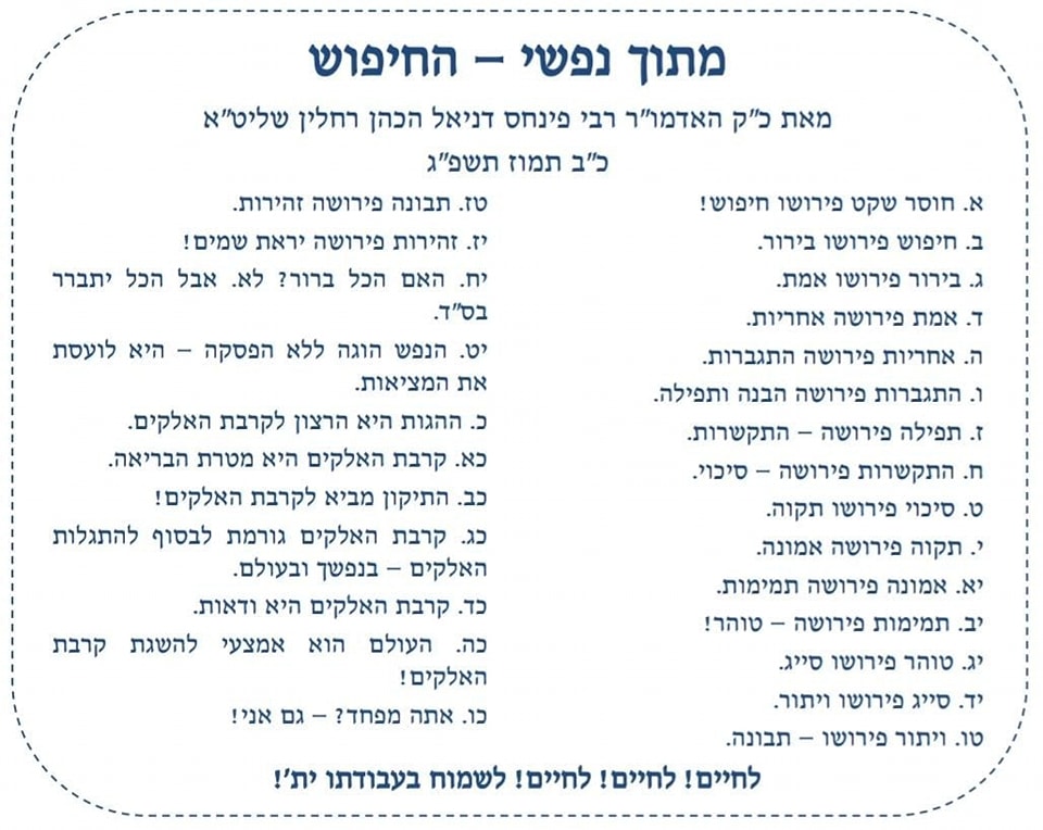 מאת כ"ק האדמו"ר רבי פינחס דניאל הכהן רחלין שליט"א