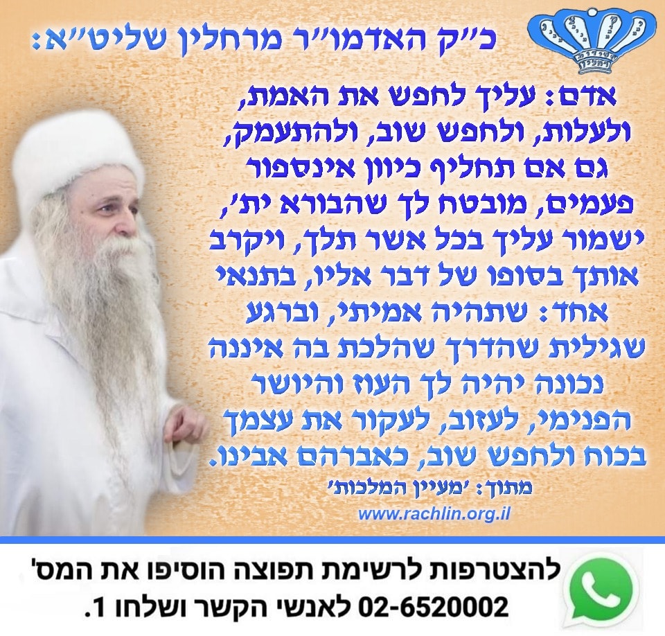 'דרך עץ החיים' היא הדרך שמחדש כ"ק האדמו"ר מרחלין שליט"א