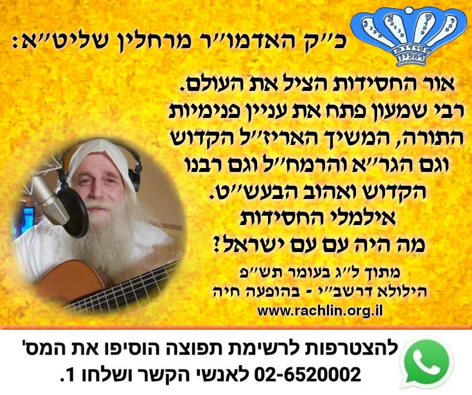 'דרך עץ החיים' היא הדרך שמחדש כ"ק האדמו"ר מרחלין שליט"א