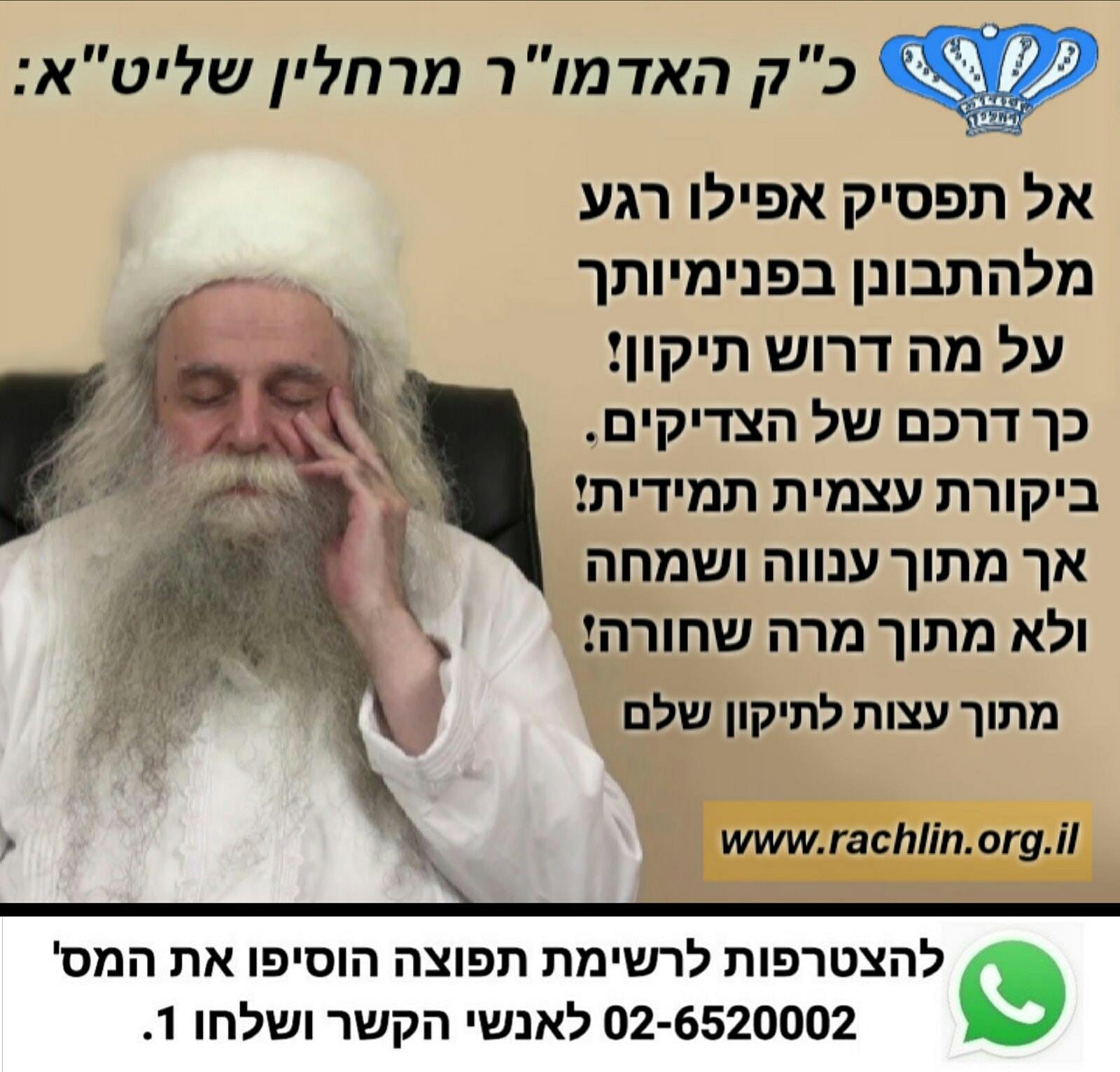 כך דרכם של הצדיקים, ביקורת עצמית תמידית! אך מתוך ענווה ושמחה ולא מתוך מרה שחורה! מתוך עצות לתיקון שלם מאת כ"ק האדמו"ר מרחלין שליט"א