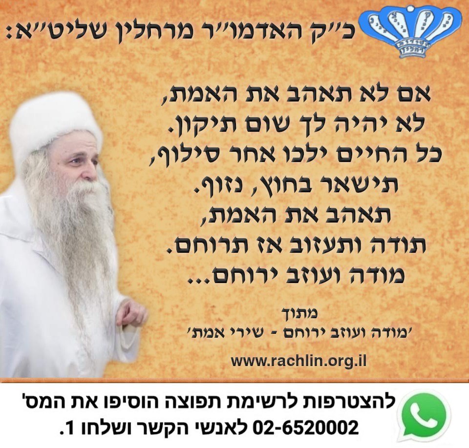 מתוך 'מודה ועוזב ירוחם - שירי אמת' מאת כ"ק האדמו"ר מרחלין שליט"א