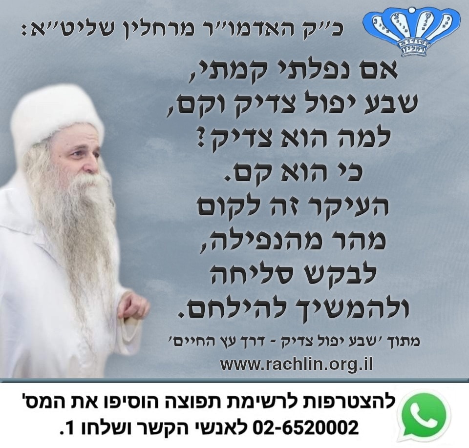 מתוך 'שבע יפול צדיק - דרך עץ החיים' מאת כ"ק האדמו"ר מרחלין שליט"א