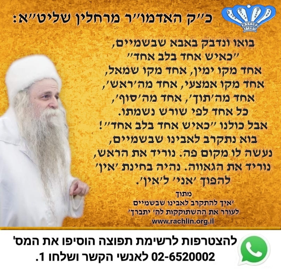 מתוך 'איך להתקרב לאבינו שבשמיים - לעורר את ההשתוקקות לה' יתברך' מאת כ"ק האדמו"ר מרחלין שליט"א