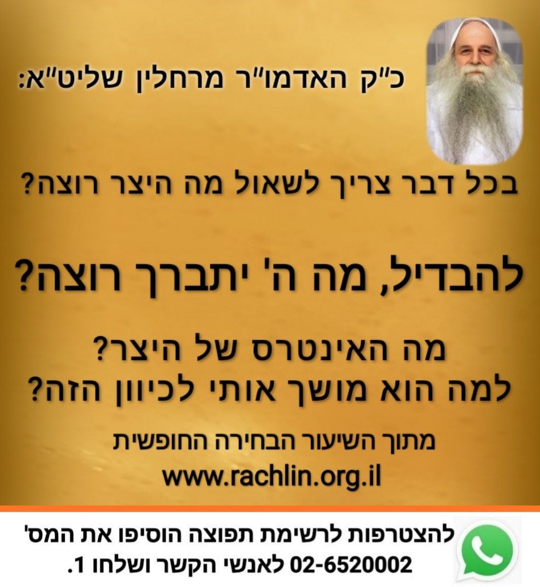 מתוך השיעור 'הבחירה החופשית' מאת כ"ק האדמו"ר מרחלין שליט"א
