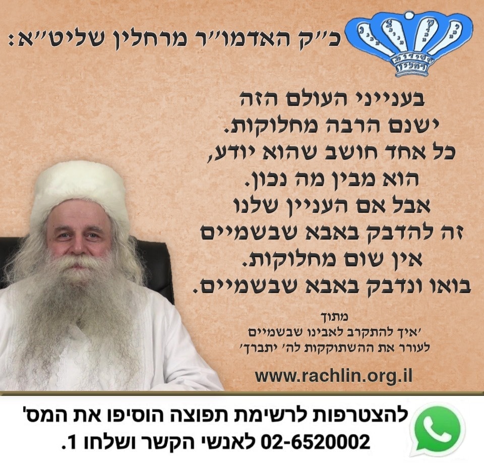 מתוך 'איך להתקרב לאבינו שבשמיים - לעורר את ההשתוקקות לה' יתברך' מאת כ"ק האדמו"ר מרחלין שליט"א