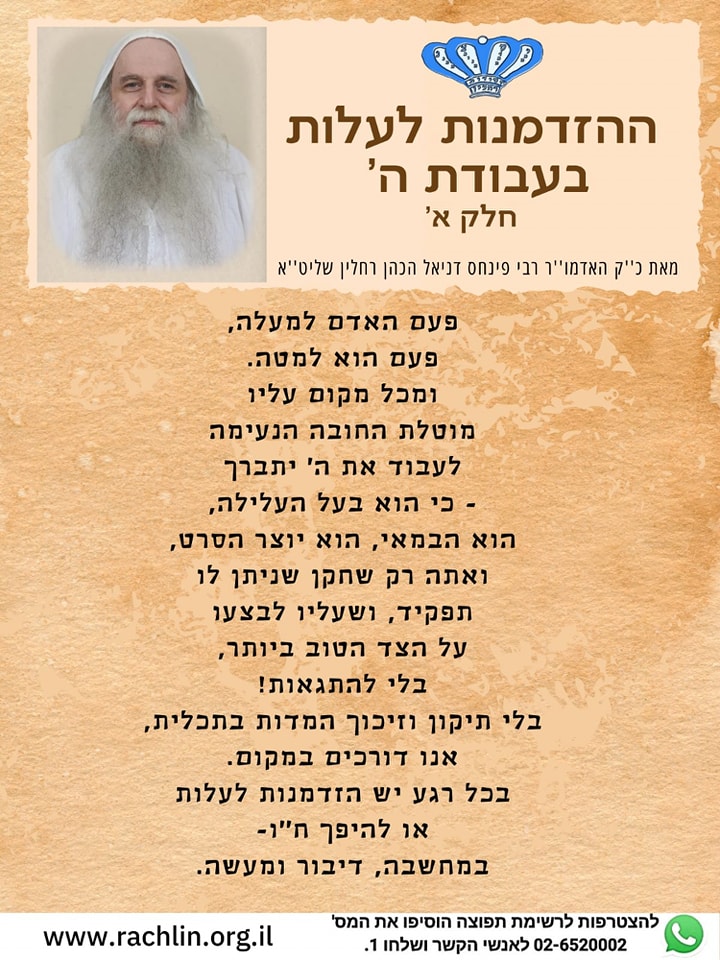 מאת כ"ק האדמו"ר רבי פינחס דניאל הכהן רחלין שליט"א