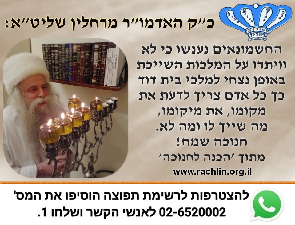 מתוך 'הכנה לחנוכה' מאת כ"ק האדמו"ר מרחלין שליט"א