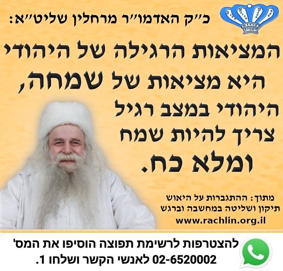 מתוך 'ההתגברות על היאוש - תיקון ושליטה במחשבה וברגש' מאת כ"ק האדמו"ר מרחלין שליט"א