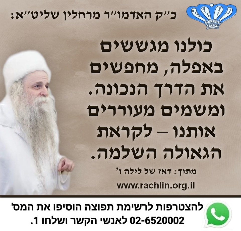 מתוך: דאז של לילה ו’ – כ”ק האדמו”ר מרחלין שליט”א