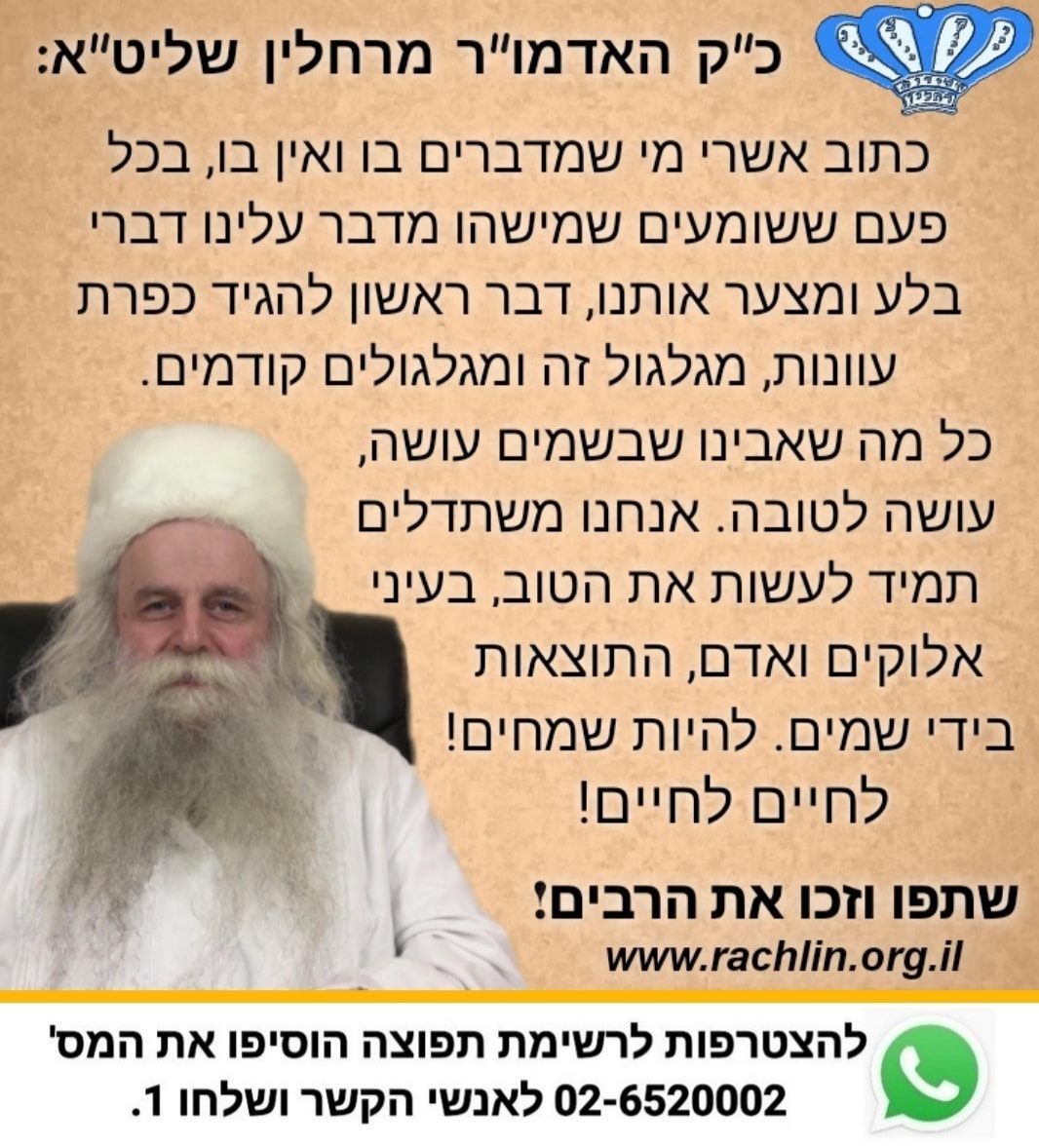 מאת כ"ק האדמו"ר מרחלין שליט"א
