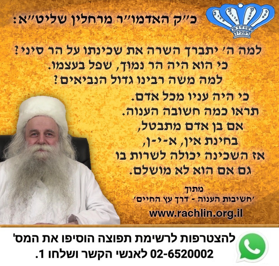 מתוך 'חשיבות הענוה - דרך עץ החיים' מאת כ"ק האדמו"ר מרחלין שליט"א