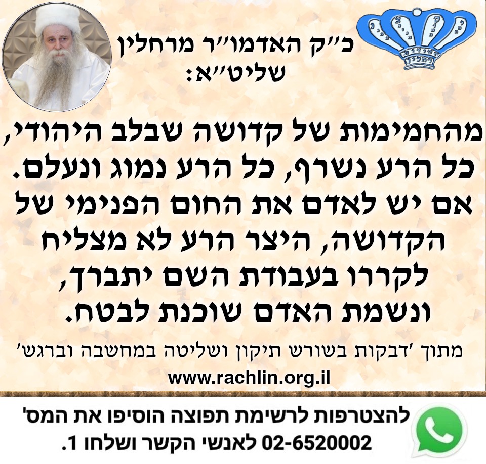 מתוך 'דבקות בשורש - תיקון ושליטה במחשבה וברגש' מאת כ"ק האדמו"ר מרחלין שליט"א
