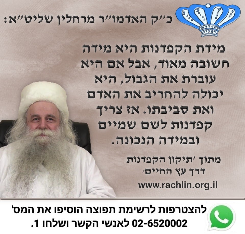 מתוך 'תיקון הקפדנות - דרך עץ החיים' מאת כ"ק האדמו"ר מרחלין שליט"א