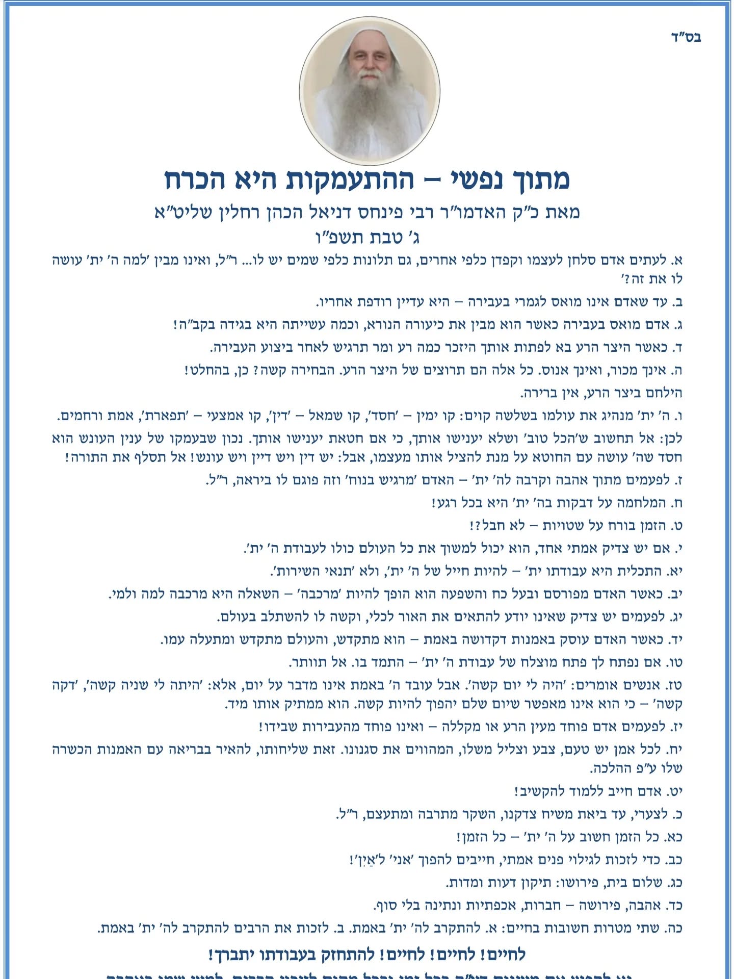 מאת כ"ק האדמו"ר רבי פינחס דניאל הכהן רחלין שליט"א