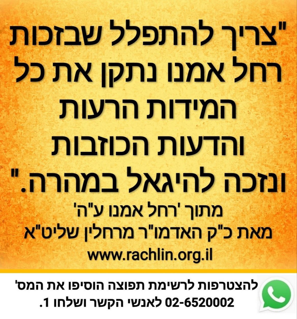 5. צריך להתפלל שבזכות רחל אמנו נתקן את כל המידות הרעות והדעות הכוזבות ונזכה להיגאל במהרה.